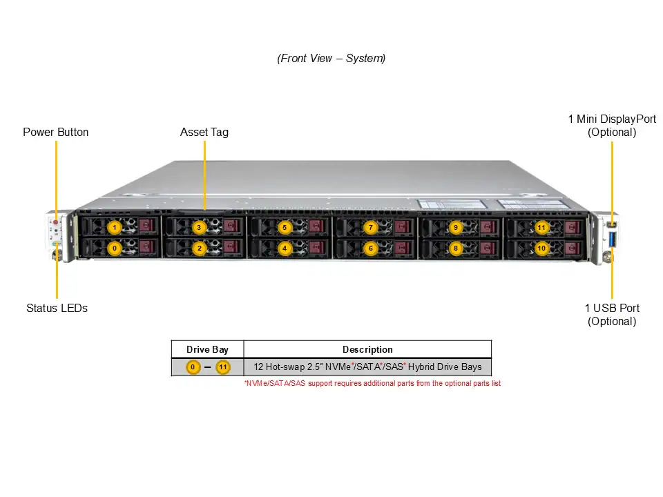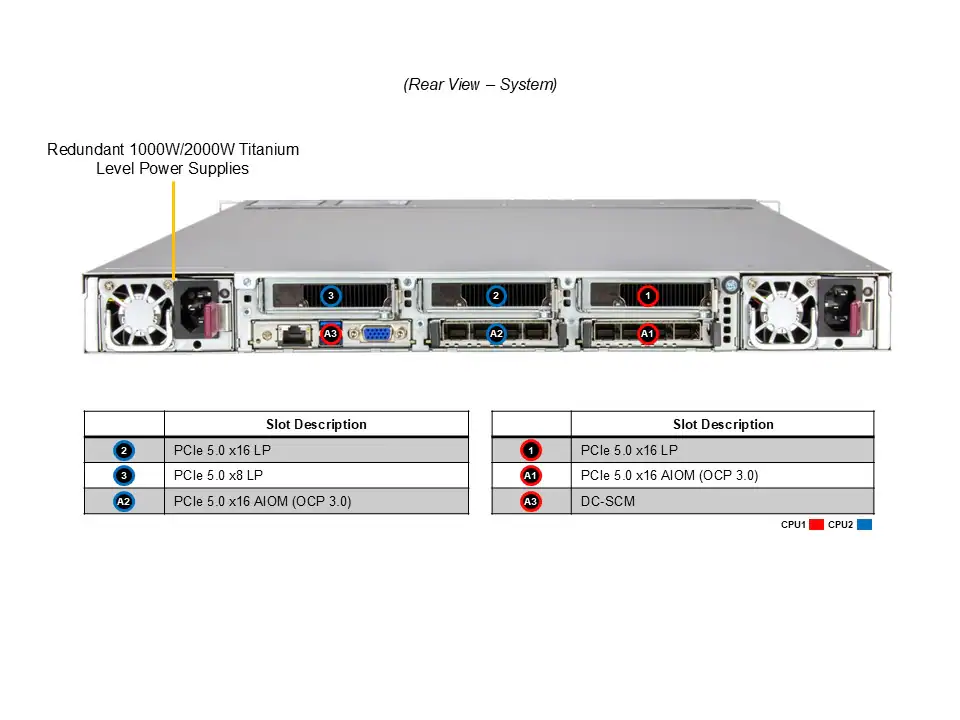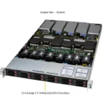 1U CloudDC with DC-MHS, 12 hot-swap 2.5” NVMe/SATA/SAS bays, 3 PCIe 5.0 x16/x8 slots and 2 PCIe 5.0 x16 AIOM slots