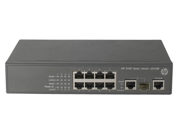HP 3100-8 V2 EI Switch with 8 10/100BASE-T ports and 1 10/100/1000BASE-T or GbE SFP dual-personality port