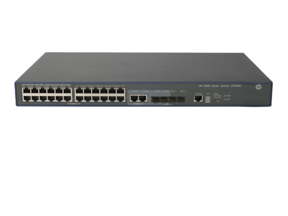 HP 3600-24 v2 EI Switch with 24 10/100Base-T ports, 4 SFP GE ports and 10/100/1000TX combo ports