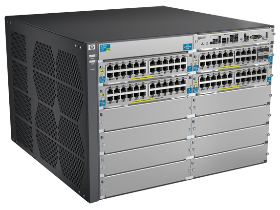 The HP 5400 zl Switch Series is a HP Networking ASIC based modular switch designed for enterprise-edge, SMB, and branch office core deployments. This Layer 3 switch has 760 Gbps backplane and license free software with an advanced Layer 2 and 3 feature set including IPv6, IPv4 BGP, policy based routing, OSPF and robust QoS.