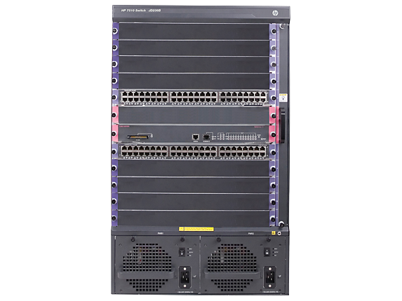 Bundle with one HP 7510 Switch, two 48-port Gig-T PoE+ modules, and one 768Gbps MPU